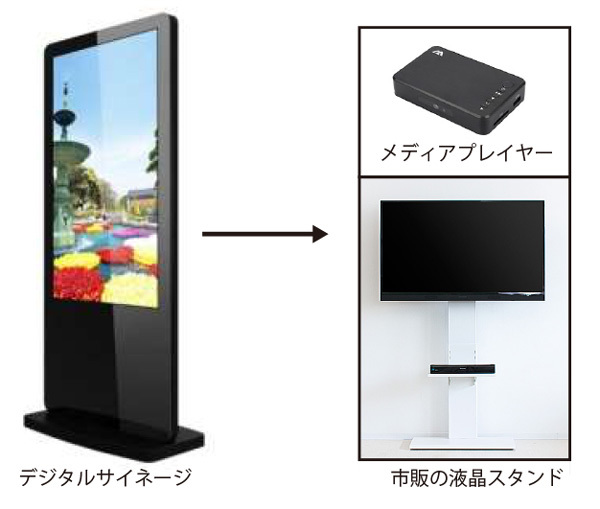 デジタルサイーネージは映像やビジュアルといった情報を出力のための映像機器だが、サイネージ(signage=看板)とよばれるように、デジタル看板に特化した機器である。